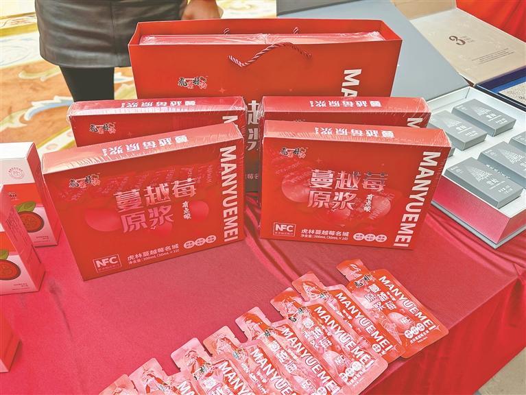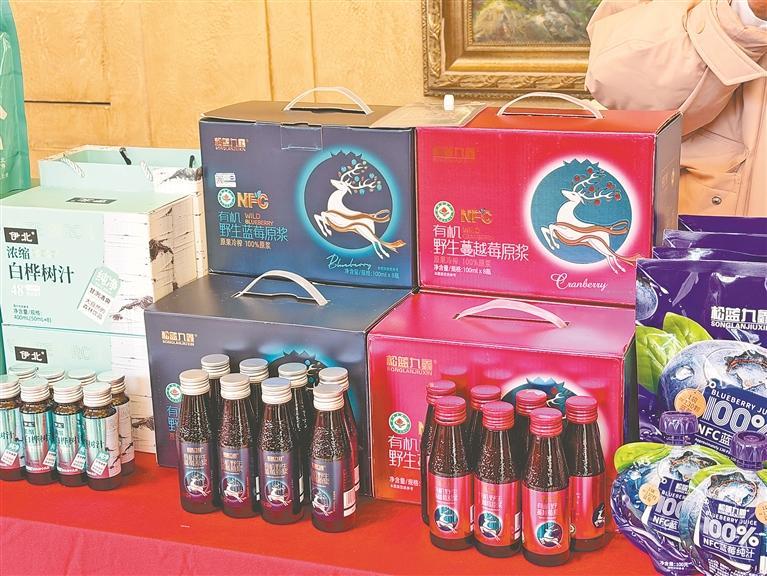 年会开启前,一场别开生面的选品会引爆现场。步入展区,果香、菌香交织萦绕,琳琅满目的森林好物整齐陈列,红彤彤的寒地沙棘、蓝莹莹的野生蓝莓、澄澈甘冽的白桦树汁、醇厚香甜的东北黑蜂蜂蜜……涵盖林果、林菌、林药、林下养殖等全品类矩阵,全方位展现着“高寒植物 高倍营养”的龙江森林食物特色。每一款产品都带着林海雪原的纯净气息,成为采购商目光聚焦的焦点。