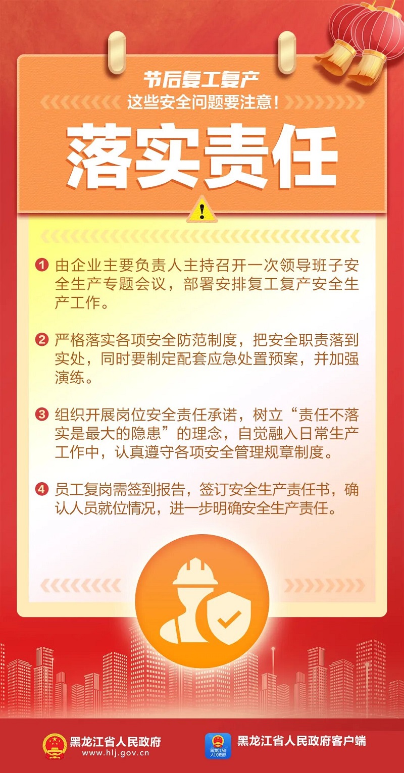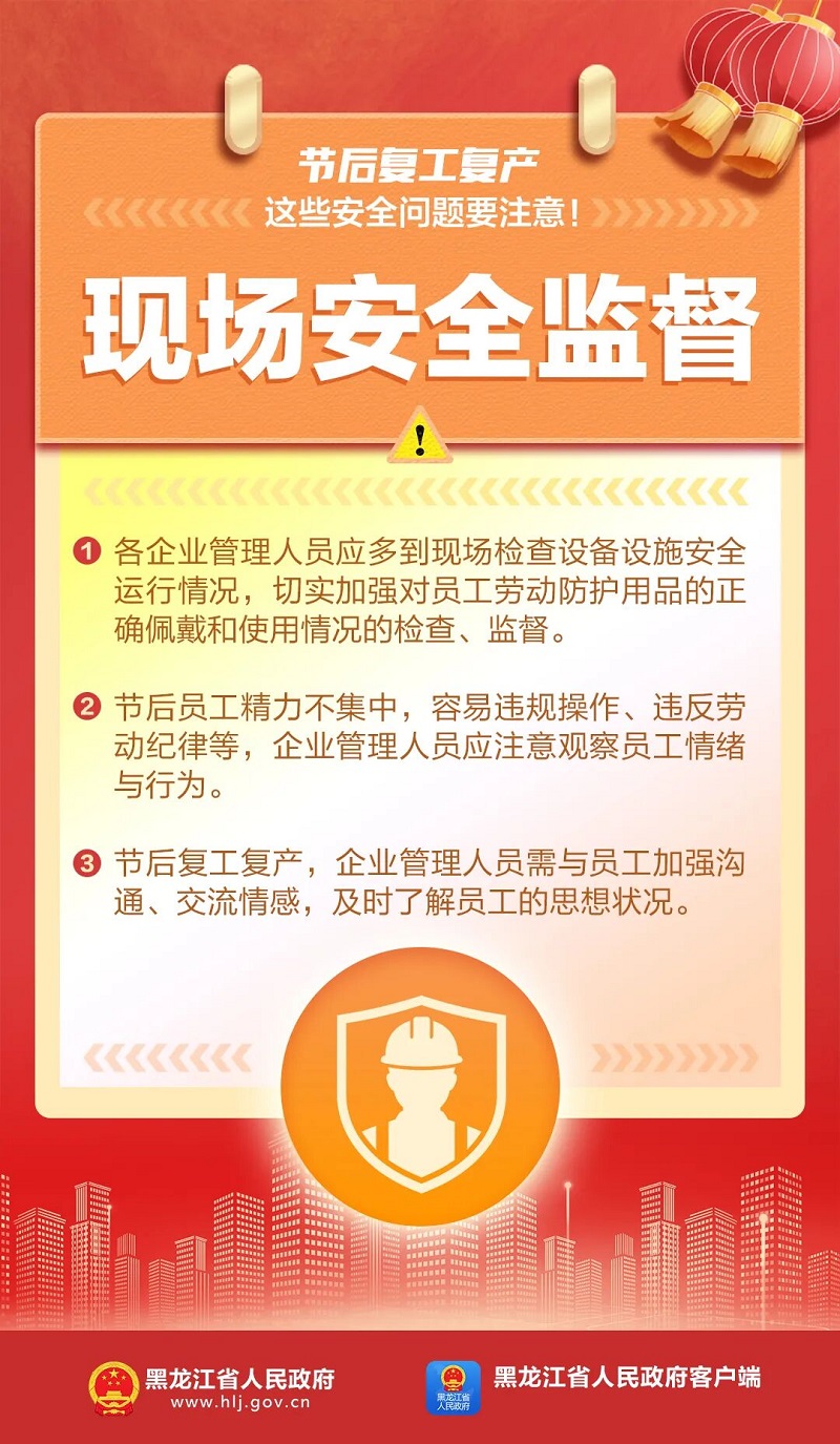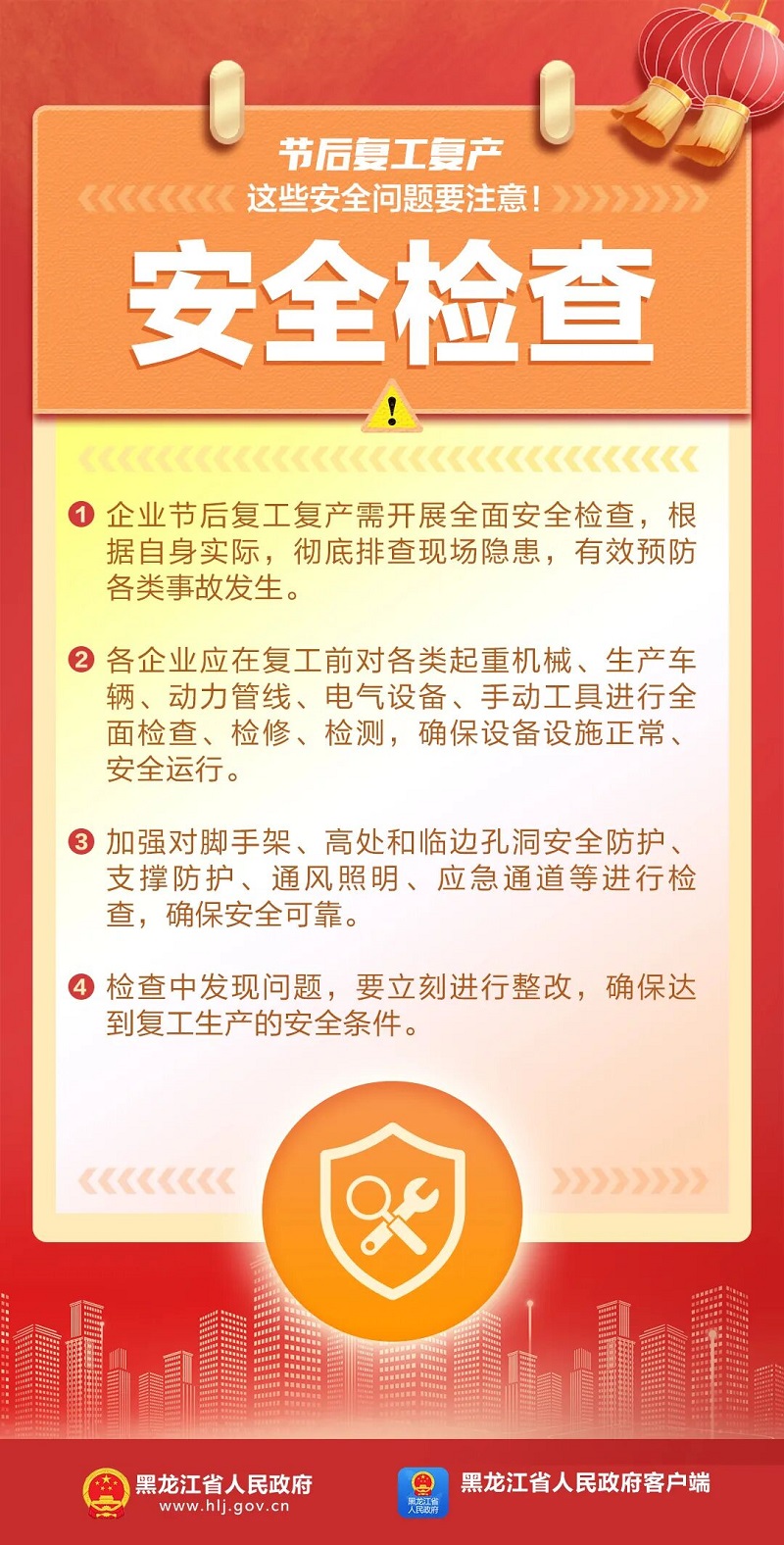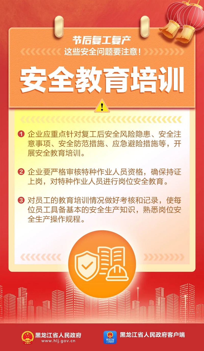 春节假期即将结束,各类生产经营单位进入复工复产关键期。安全防范不可疏忽大意,这些节后复工复产安全问题要注意!