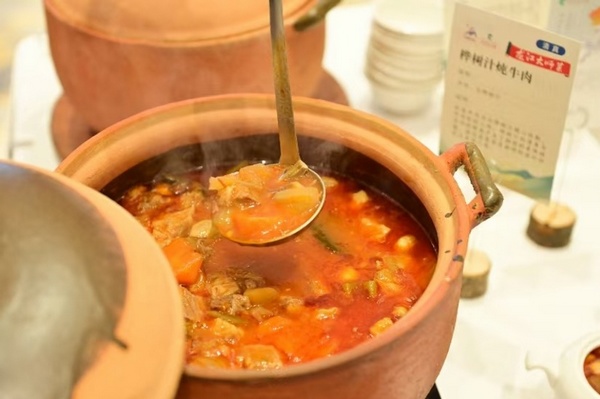 在“龙江大师菜”展区,黑龙江餐饮协会会长姜立滨率领省内顶尖烹饪大师们以高寒森林食材为原料,精心研发制作出一道道令人垂涎欲滴的美味佳肴。这些菜品不仅展现了精湛的厨艺,更将黑龙江的森林食材与独特的饮食文化完美融合。“元蘑炖森林鸡”“奶汁松茸汤”“松枝熏鳇鱼”等入选“龙江大师菜”的菜品,在展区中一一呈现,嘉宾品鉴后赞不绝口。