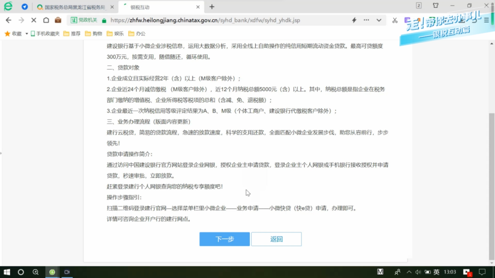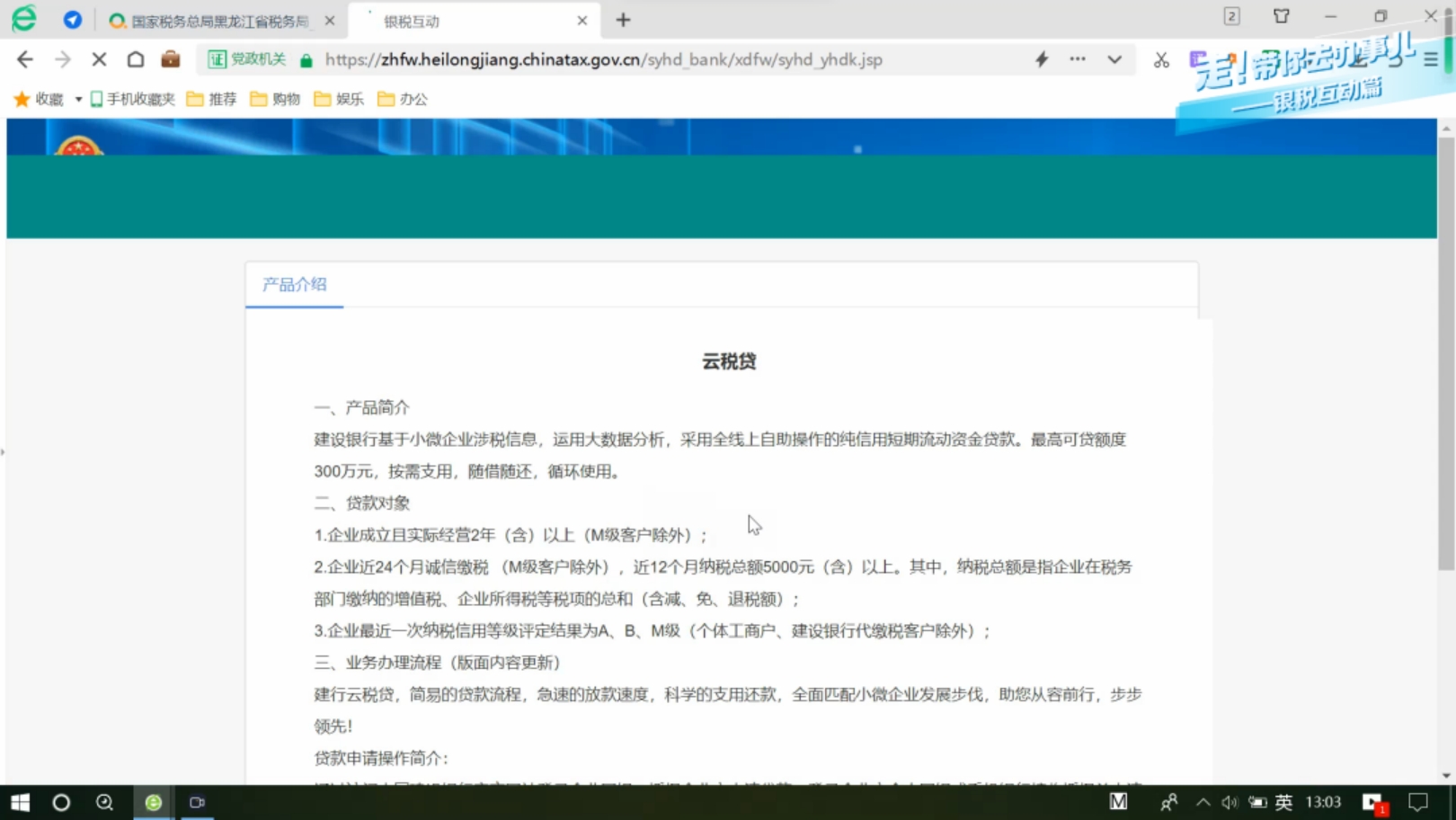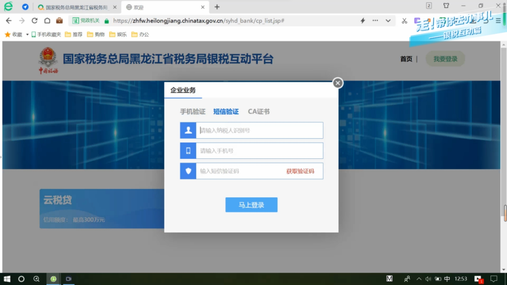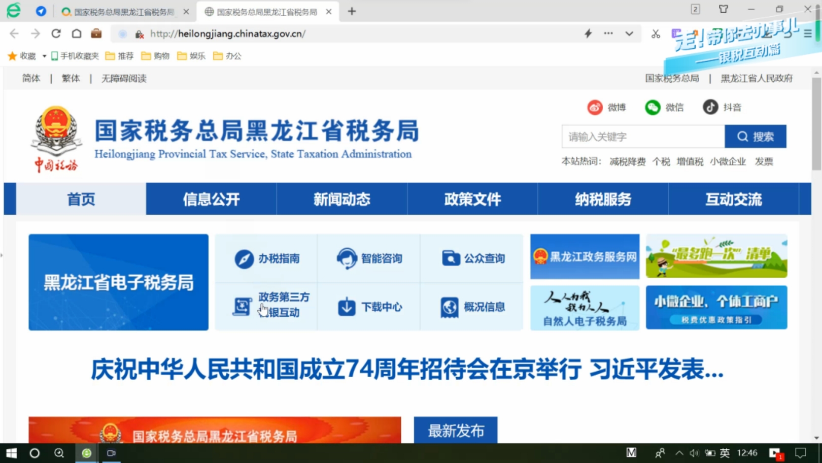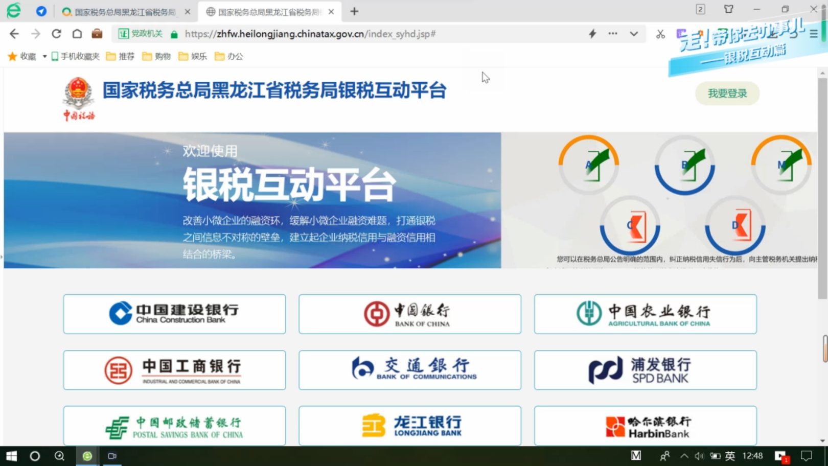 在网站首页点击“政务第三方税银互动”,进入银税互动平台。