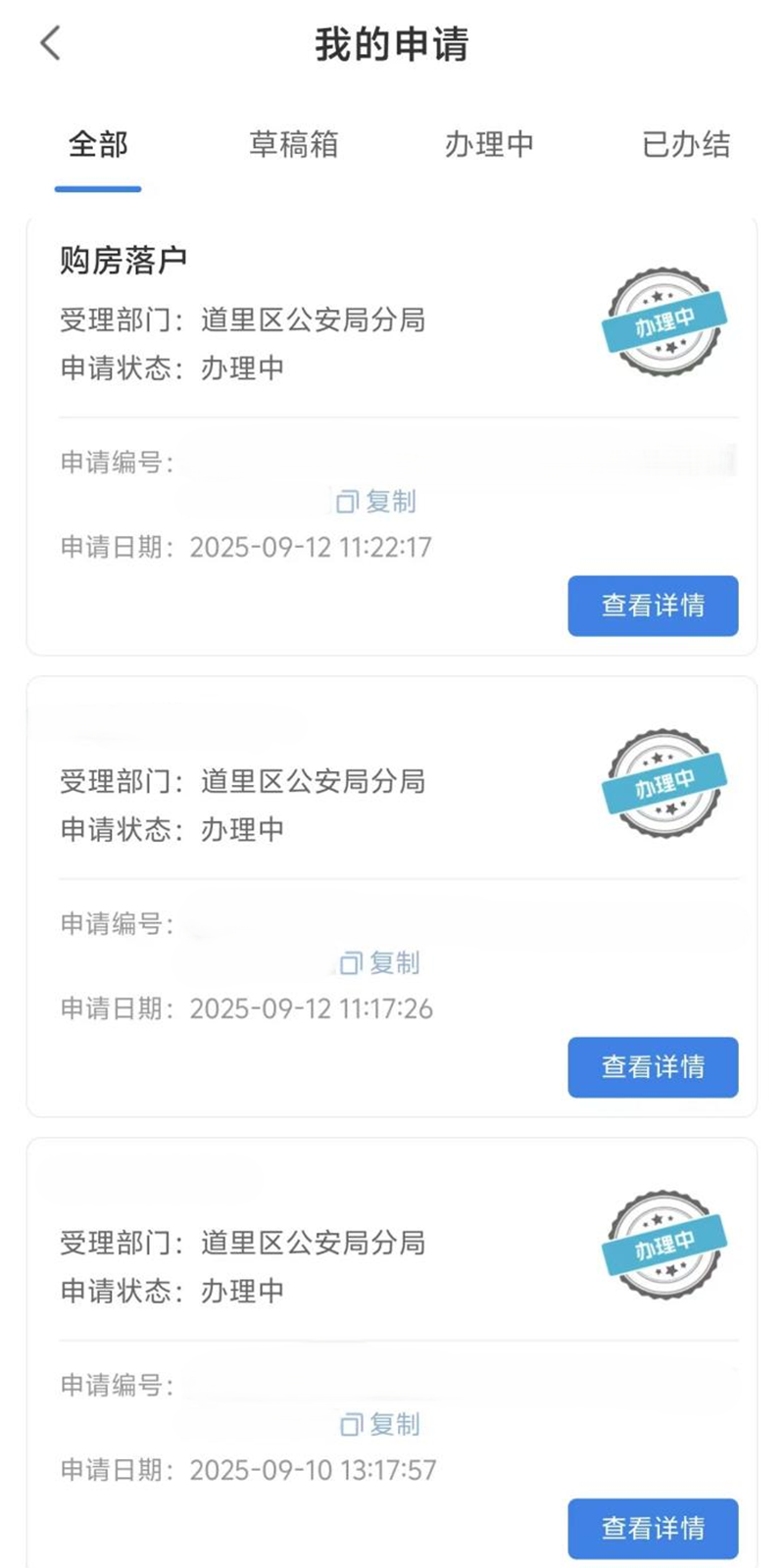 市民可随时在“我的申请”板块查看办理进度,实时掌握业务动态。