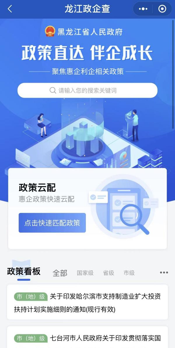 7月26日,由 网打造的“龙江政企查”专栏正式上线,旨在进一步服务好市场主体,为企业提供权威、精准、便捷、高效的政策服务,实现政策与市场主体精准匹配、有效推送。