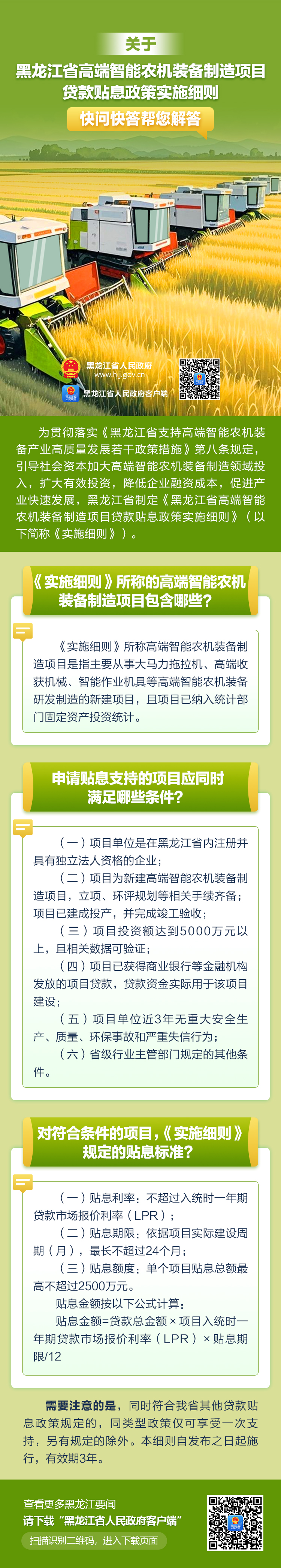 关于黑龙江省高端智能农机装备制造项目贷款贴息政策,快问快答帮您解答!