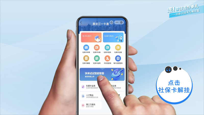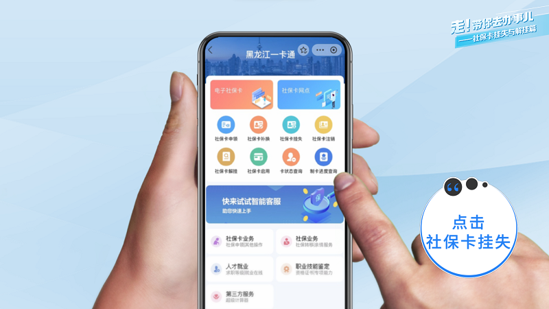 持卡人可以通过“黑龙江一卡通”支付宝小程序、“电子社保卡”等渠道办理社保卡挂失业务。
