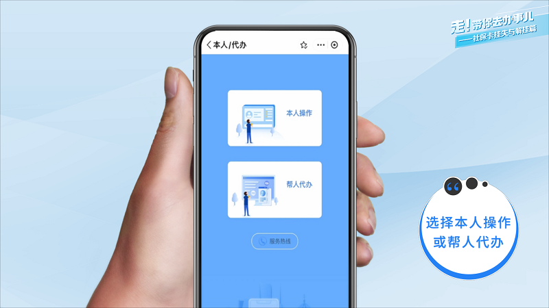 在“社保卡挂失”应用界面选择“本人操作”或“帮人代办”。