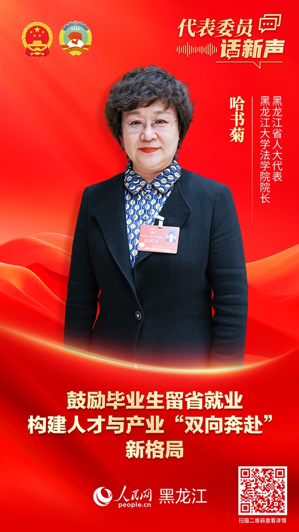 “作为一名来自法学教育战线的省人大代表,结合黑龙江省的地域特色与发展现状,我提交了‘关于促进高校毕业生留省就业创业的建议’,同时我还建议未来能够进一步强化法学实践与法学教育的协同融合,进一步加强法治人才培养与法治实践需求的同频共振。”黑龙江省人大代表、黑龙江大学法学院院长哈书菊说。
