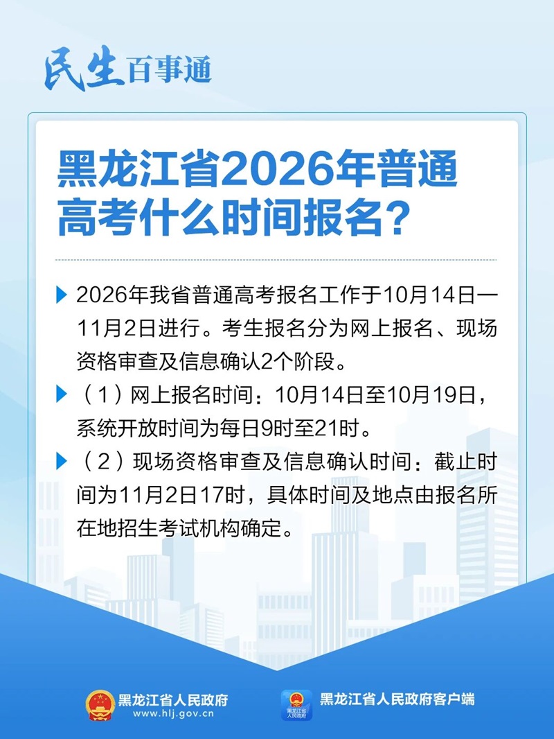 本期为您介绍“黑龙江省2026年普通高考报名”相关问题。