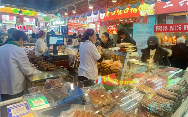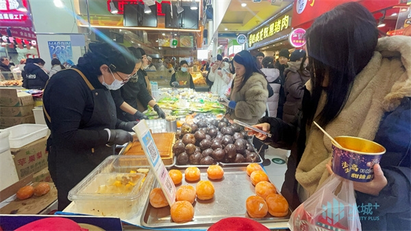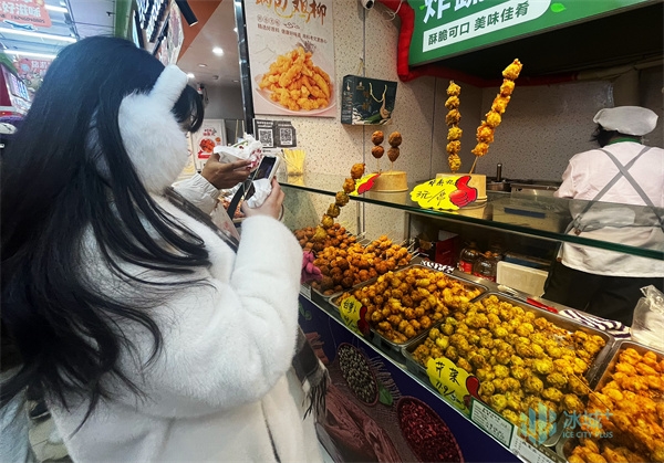 冰雪旅游旺季,游客们沉醉在哈尔滨独特的冰情雪韵之中的同时,也被冰城美食所吸引。20日,在有着美食聚集地之称的道里菜市场内,游客摩肩接踵,红肠、冻梨、格瓦斯、麻辣烫、炸蔬菜丸,各色小吃让人目不暇接,大家边走边吃边拍,把冰城美食吃进肚子里的,拍到手机里,留在记忆中。(记者 刘达齐 文/摄)
