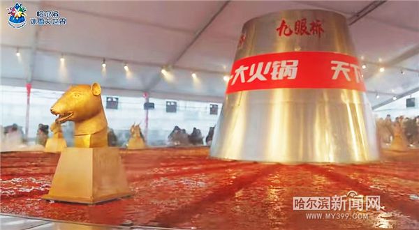 在冰天雪地里吃一顿火锅是什么感觉?近日,哈尔滨冰雪大世界大火锅开吃了,热辣滚烫的滋味挑动游客味蕾。